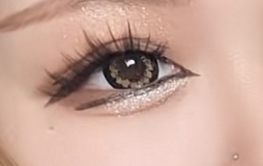 太めのフチと高発色のブロンドブラウンで瞳にインパクト。
